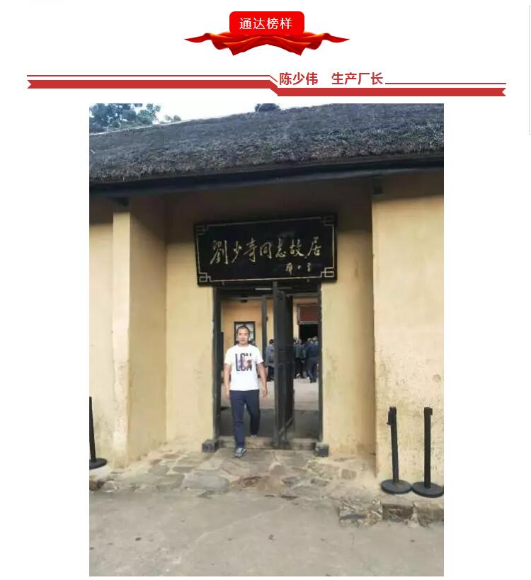 “人不率,順不從,身不先,則不信”,這是形容陳廠長最動聽的一句話,因為無論做什么事他都身體力行,為各個車間主任做出最好的榜樣,一直恪盡職守,兢兢業(yè)業(yè)!向陳廠長致敬!向通達的榜樣人致敬!