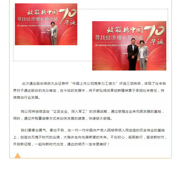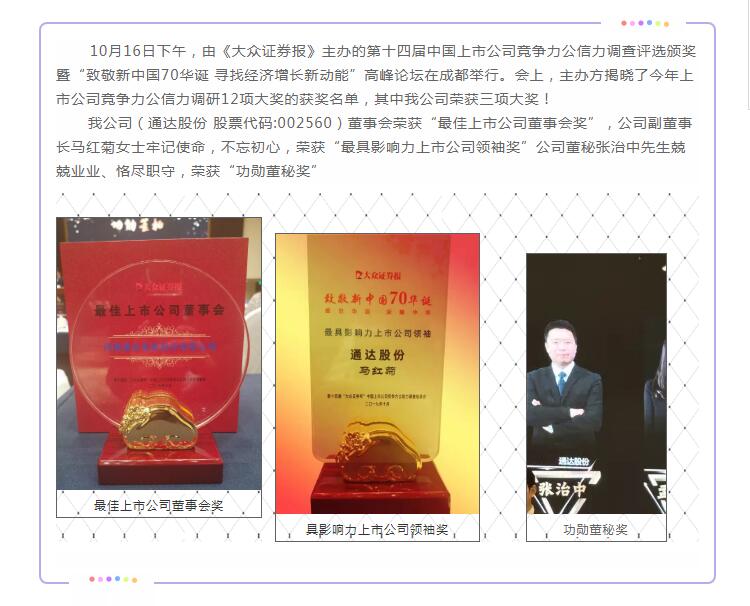 通達(dá)股份榮獲中國上市公司競爭力公信力調(diào)查評(píng)選三項(xiàng)大獎(jiǎng)!