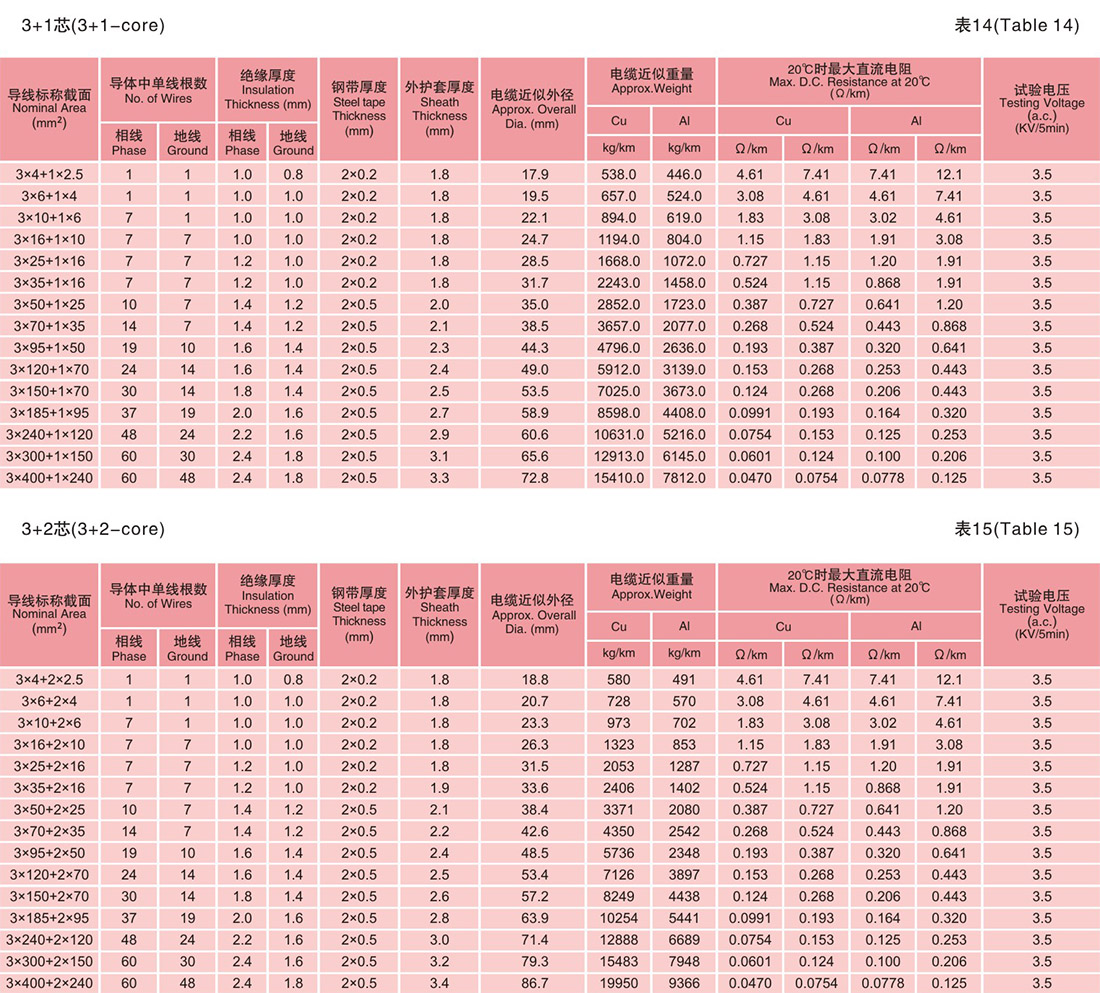0.6/1kV PV℃絕緣鋼帶鎧裝PV℃護(hù)套阻燃或非阻燃電力電纜(見(jiàn)表9-16)