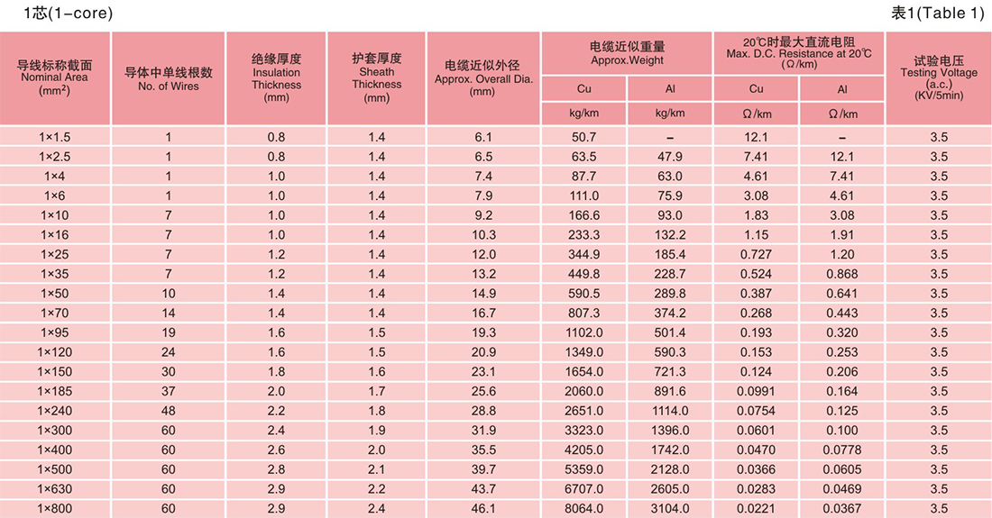 0.6/kV PV℃絕緣PV℃護(hù)套阻燃或非阻燃電力電纜(見(jiàn)表1-8)
